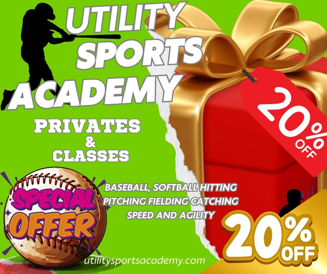 Save 20% on any baseball or softball class or private use promo code (Christmas) at checkout to save 20%
